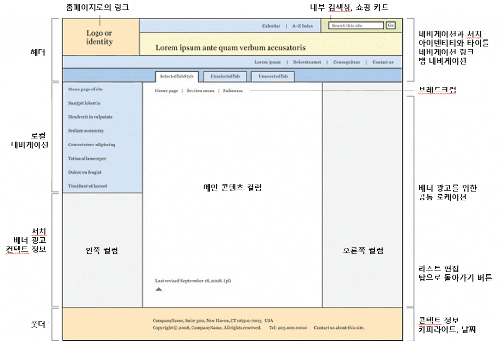 * 헤더에는 검색창, GNB, 홈페이지 연결링크가 포함되어 있어야 한다.