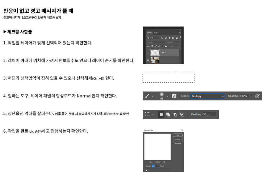 그렇지 않으면 브러쉬툴 이용 못함 등.... 정말 하다가 왜 오류나지? 할땐 아래 사항을 체크해 보라고 하셨슴!