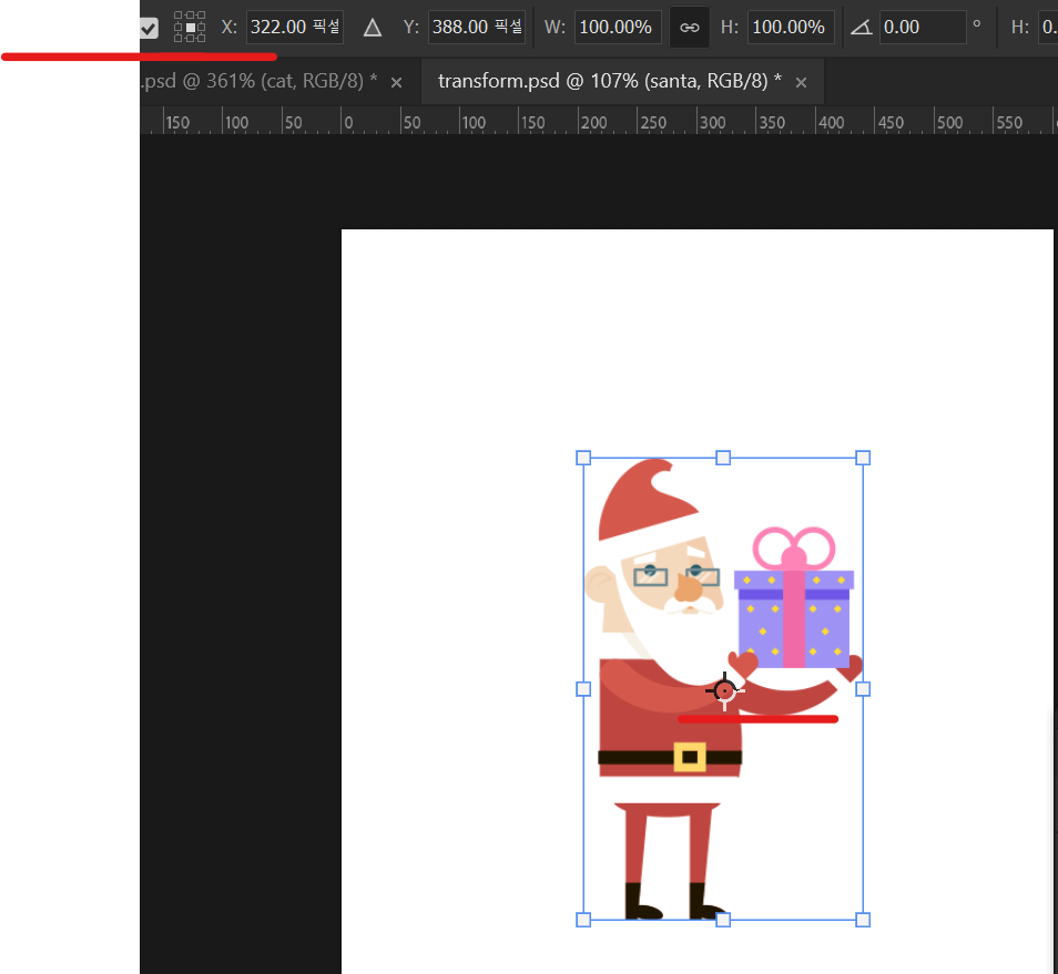 - 변형 컨트롤 체크 되어있다면, 이미지 크기 조절이 자유로울 거고, 바로 회전도 가능하다.