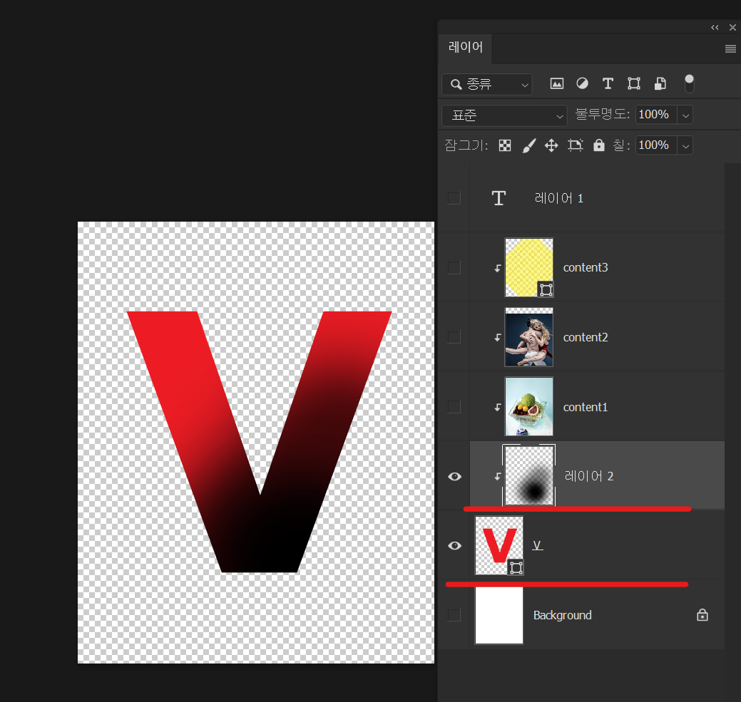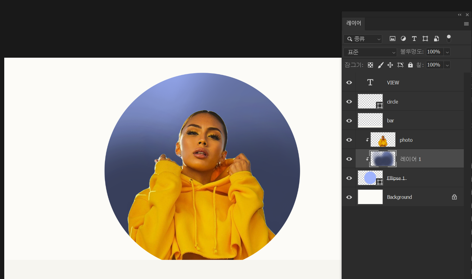 사진 위에서 클리핑마스크 누르면 아래에 있는 도형에 모형에 맞게 만들어짐
