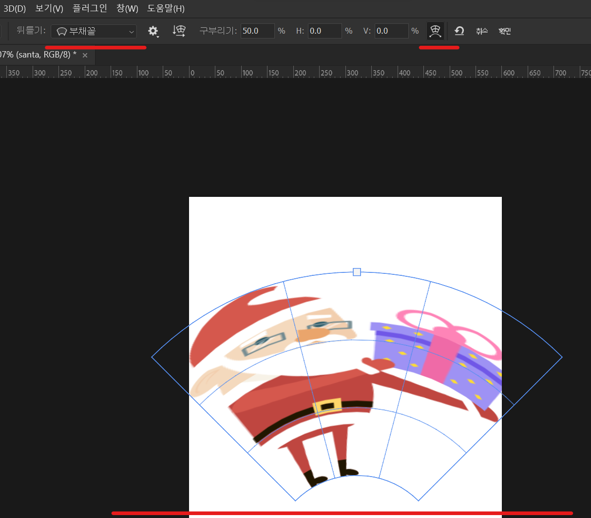 방향을 다르게 왜곡하고 싶을 때는 아래 선택하기