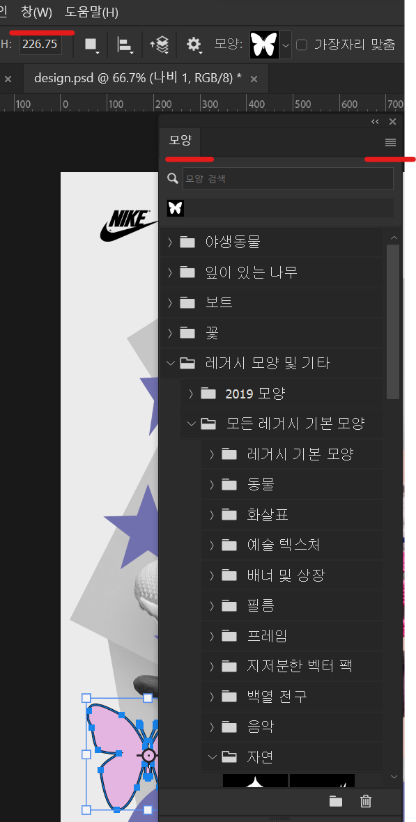 모양레이어는 윤곽선으로 만드는 것과 다르게 크기조절을 아주작게하다가 크게 늘려도 전혀 깨지지 않는다.